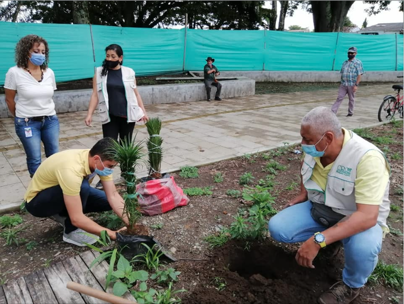 En La Tebaida los gestores ambientales se articularon con personal de la Unidad de Asistencia Rural y Ambiental, Udra, en la jornada de reforestación que se realizó en el parque Luis Arango Cardona, donde se sembraron especies frutales y ornamentales para fuente de alimento de la avifauna del municipio.