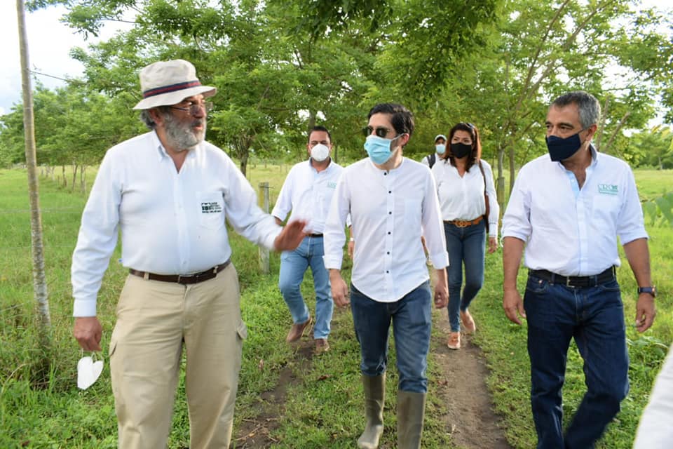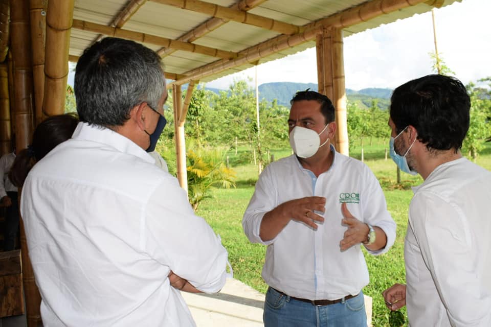 El director general de la CRQ, José Manuel Cortés Orozco, el representante del Jardín Botánico, Alberto Gómez Mejía y el viceministro de Ambiente y Desarrollo Sostenible, Juan Nicolás Galarza, recorrieron los tres predios ubicados en la vereda Calle Larga del municipio de Calarcá, los cuales están siendo intervenidos como parte del convenio entre estas dos instituciones.