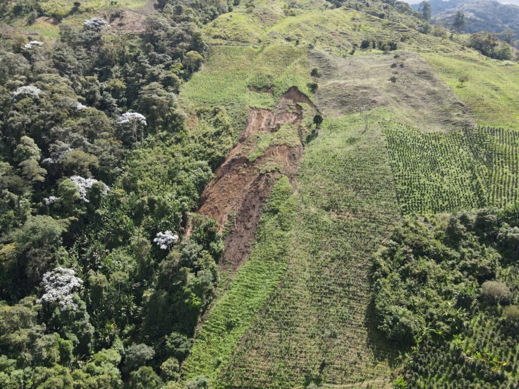 Por otro lado, se están revisando los hallazgos identificados en el predio La Campiña, ubicado en la parte alta del municipio, en un sector totalmente agrícola, para determinar acciones de reforestación que contribuyan a la mitigación del riesgo en esta zona.