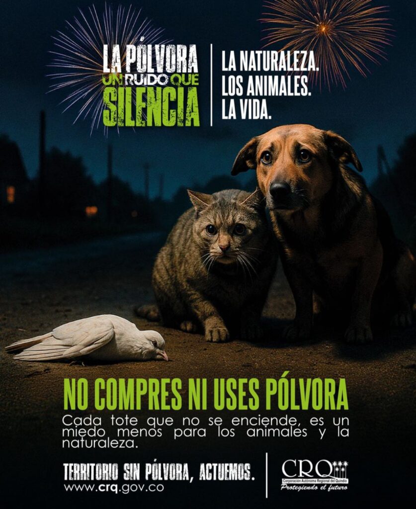 La Corporación Autónoma Regional del Quindío reiteró su llamado a la ciudadanía para evitar el uso de pólvora durante el inicio de las novenas y las celebraciones de fin de año, invitando a vivir el espíritu navideño en armonía con la naturaleza, reemplazando el sonido de las explosiones por el de la vida silvestre.